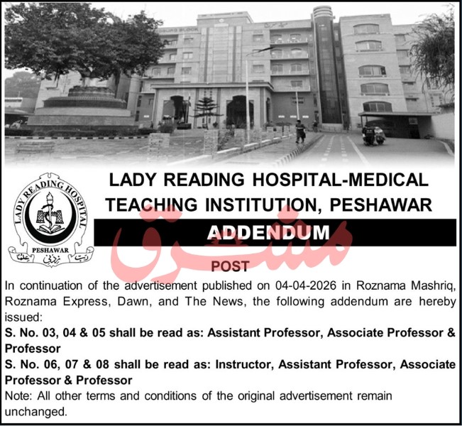 Lady Reading Hospital Jobs 2026 In Peshawar Advertisement
