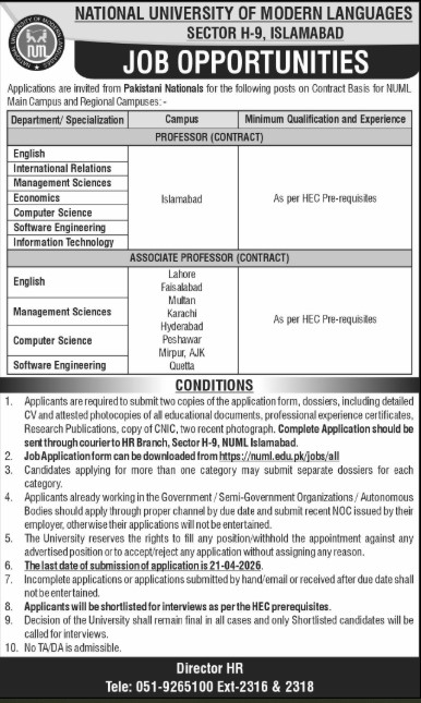 Vacancies Details of National University of Modern Languages Jobs 2026
